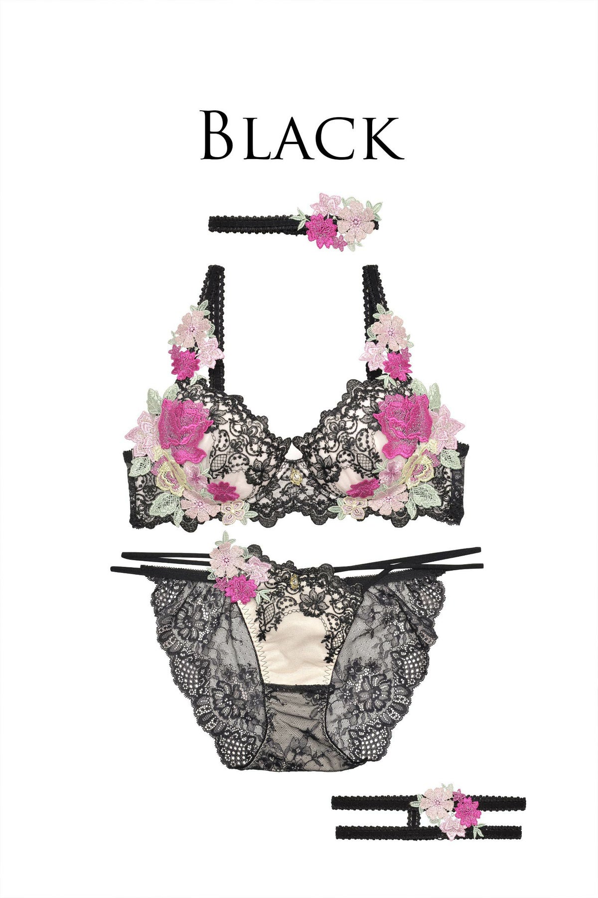 他の画像を見る フルバックSET Dressy Flower Lady Bra&Shorts / Black ドレッシーフラワーレディブラ&ショーツ / ブラック ¥ 8,250 税込 お気に入りに登録する