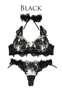 女性らしい首元を演出するチョーカーまでついた豪華SET。勝負の日にオススメのランジェリーです。