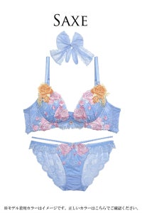 艶やかなバラ柄の刺繍レースを、ブラジャーカップとカップ台にも使用した贅沢なデザイン♪ケミカルモチーフはキラキラのラメ糸を使い、カップと違った色のバラを乗せることで、カラフルなお花畑のように仕上げました!