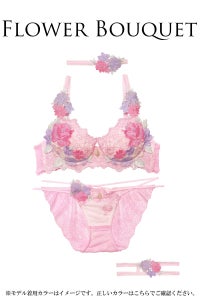 貴婦人のドレスをイメージした繊細な刺繍レースをブラジャーカップとアンダー部分にたっぷりと使い、さらに上からこれでもかというほど大きなフラワーモチーフをあしらいました。