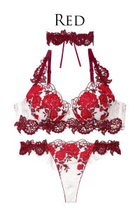 ショーツサイドにも贅沢にケミカルレースを使用。フェイクリボンでセクシーさをプラス。ケミカルレースのチョーカーまでついてきます!!勝負の日にオススメのランジェリーです!