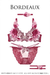 貴婦人のドレスをイメージした繊細な刺繍レースをブラジャーカップとアンダー部分にたっぷりと使い、さらに上からこれでもかというほど大きなフラワーモチーフをあしらいました。