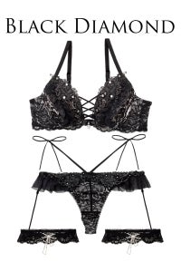 ビジューをたくさん散りばめた華やかでドレッシーなランジェリー!カップにはジュエリーのように輝く薔薇のレースモチーフ♪
