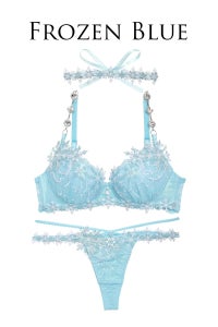 刺繍レース下にはオーロラ生地を挟んでいるので、氷の輝きを思わせる透明感のあるランジェリーに仕上がりました!