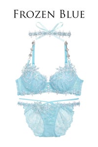刺繍レース下にはオーロラ生地を挟んでいるので、氷の輝きを思わせる透明感のあるランジェリーに仕上がりました!
