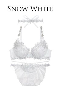宝石のような雪の結晶をかたどったケミカルレースがブラジャーアンダー部分・ショーツサイド・チョーカーに付いているのでとっても豪華です!!