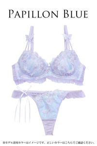 妖精のようなかわいらしさと、艶っぽさを兼ね備えたランジェリー!バラ&パピヨン柄の刺繍レースは、ラメ糸を使用しているのでキラキラと輝きを放ちます♪