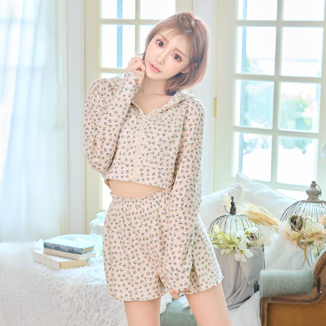 Lacy Frill Floral Bra&Shorts / Navy