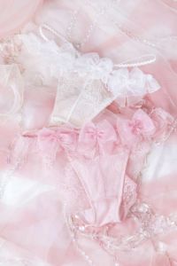 フロント谷間部分やショーツのバックデザインのレースアップも抜群にかわいいし、 ブラのバックベルト部分の透け感やほわほわ感がすき! -